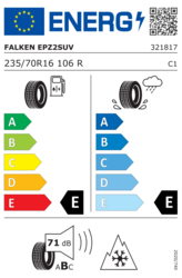 O pneu Falken Espia EPZ2 SUV é projetado para garantir uma condução confiante nas condições de inverno mais severas. Graças à última tecnologia em design de banda de rodagem, compostos e construção, o EPZ2 SUV oferece uma excelente combinação de desempenho de inverno e manobrabilidade.